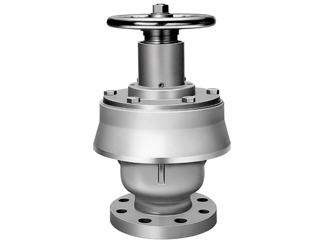 このように、あくまでも設定された締切弁体の開度で発生するP1 と Pd の圧力差で作動しているため、入口圧力 P1 の変動に対しても、また管末の圧力変動による P2 の変化に対しても関係なく、締切弁体の開度に比例した一定流量となる。 - 締切に近づくと締切弁体と自動弁体は主軸を介して一体化し、締切弁体下方からの P1 とダイヤフラム上方からの P1 でバランスして、ハンドル操作は軽快であり、メカトロ化も容易に計画できる。