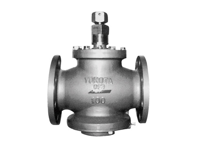- 一方、この自動弁体は下方からは中間圧力 Pd とコイルばねの作用力で押し上げられ、バランスするまで作動して、流路 B を形成し出口圧力 P2 に収束する。